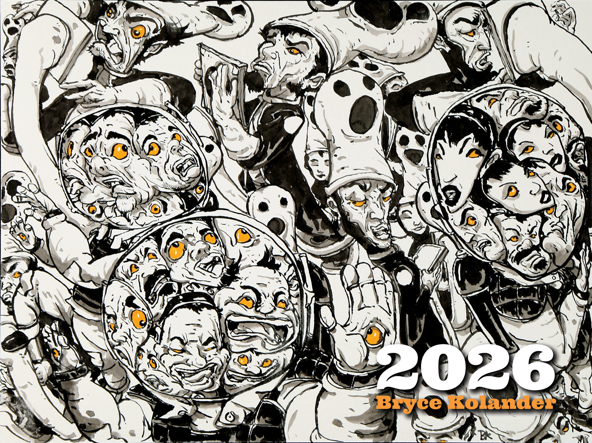 2026 Wall Calendar featuring 12 different drawings by Bryce Kolander.